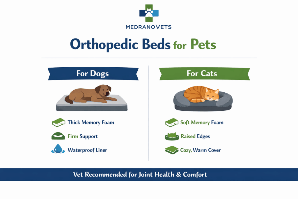 Orthopedic beds, heated pads (designed specifically for pets), or calming wraps can dramatically improve comfort — especially for older animals or those with arthritis.