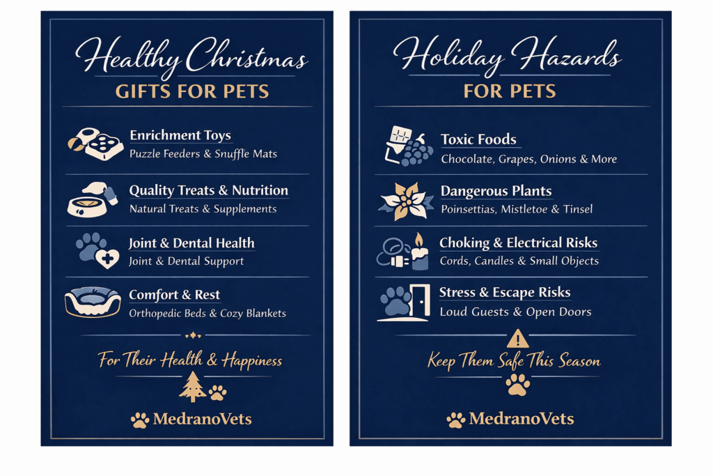 Christmas is a time of joy, generosity and family—pets included. As a veterinary professional, one of my favorite parts of the season is seeing how deeply people want to care for their animals. Below are two important ways to do just that: choosing gifts that truly support your pet’s well-being and protecting them from common holiday hazards.