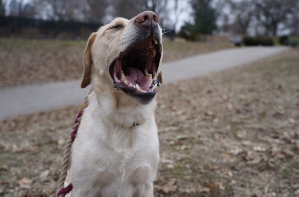 Henley yawning in Fort Greene Park, Brooklyn. Photo by Allison Carden Hanes.